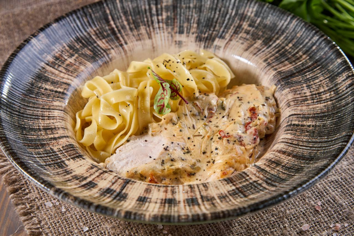 Горячее на выбор: Куриная грудка в сливочном соусе / Рваная свинина в запечённом картофеле / Запечённая свинина на булочке бриошь / Белорыбица в сливочно-лимонном соусе / Фрикадельки в азиатском стиле