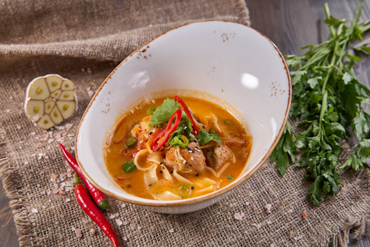 Суп на выбор: Борщ / Суп-пюре из тыквы / Тай Чикен суп