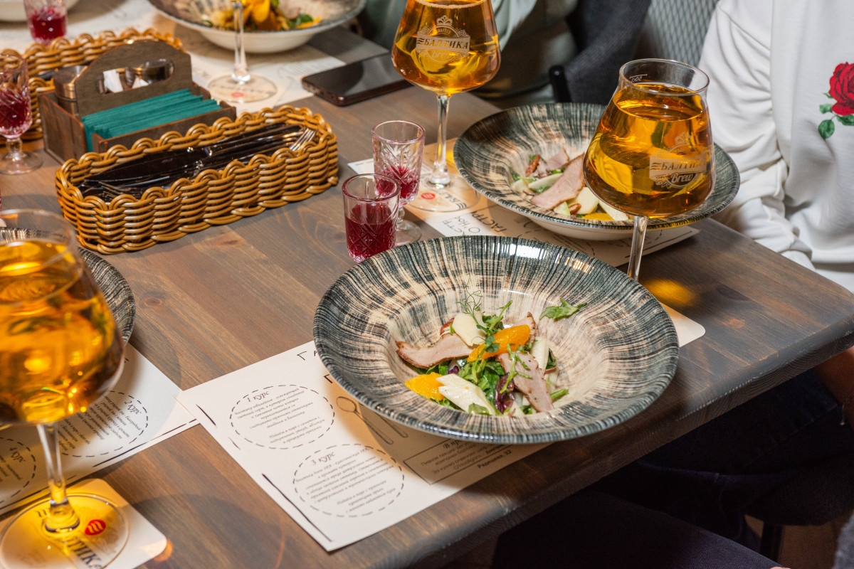 В четверг, 11 декабря, в гастропабе на Радищева, 32, прошёл гастроужин: шеф-повар Дмитрий Цой представил 4 новых блюда, а бренд-амбассадор компании «Балтика» Алексей Виноградов рассказал о секретах производства любимого пенного напитка!